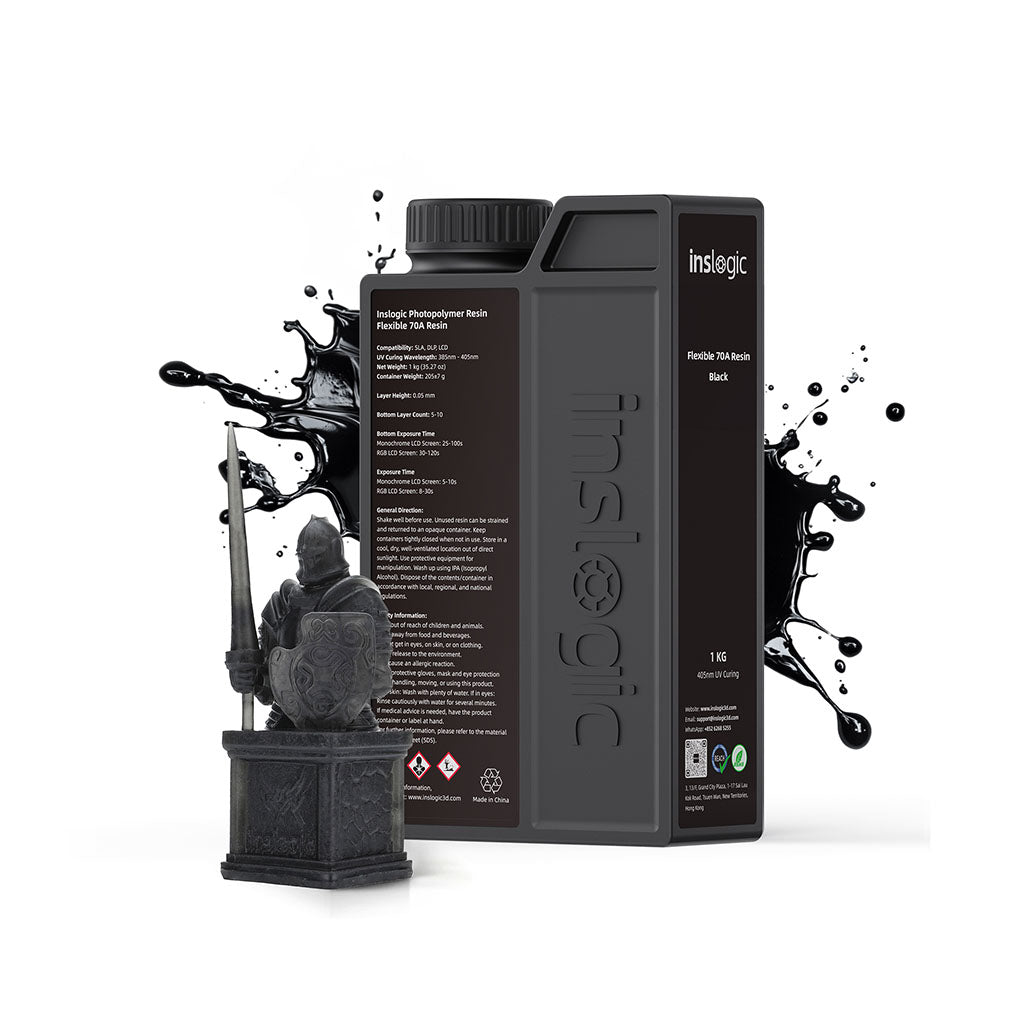 Inslogic Flexible 70A Resin is engineered for high strength and elasticity, with the ability to withstand bending, compression, and repeated flexing without cracking.