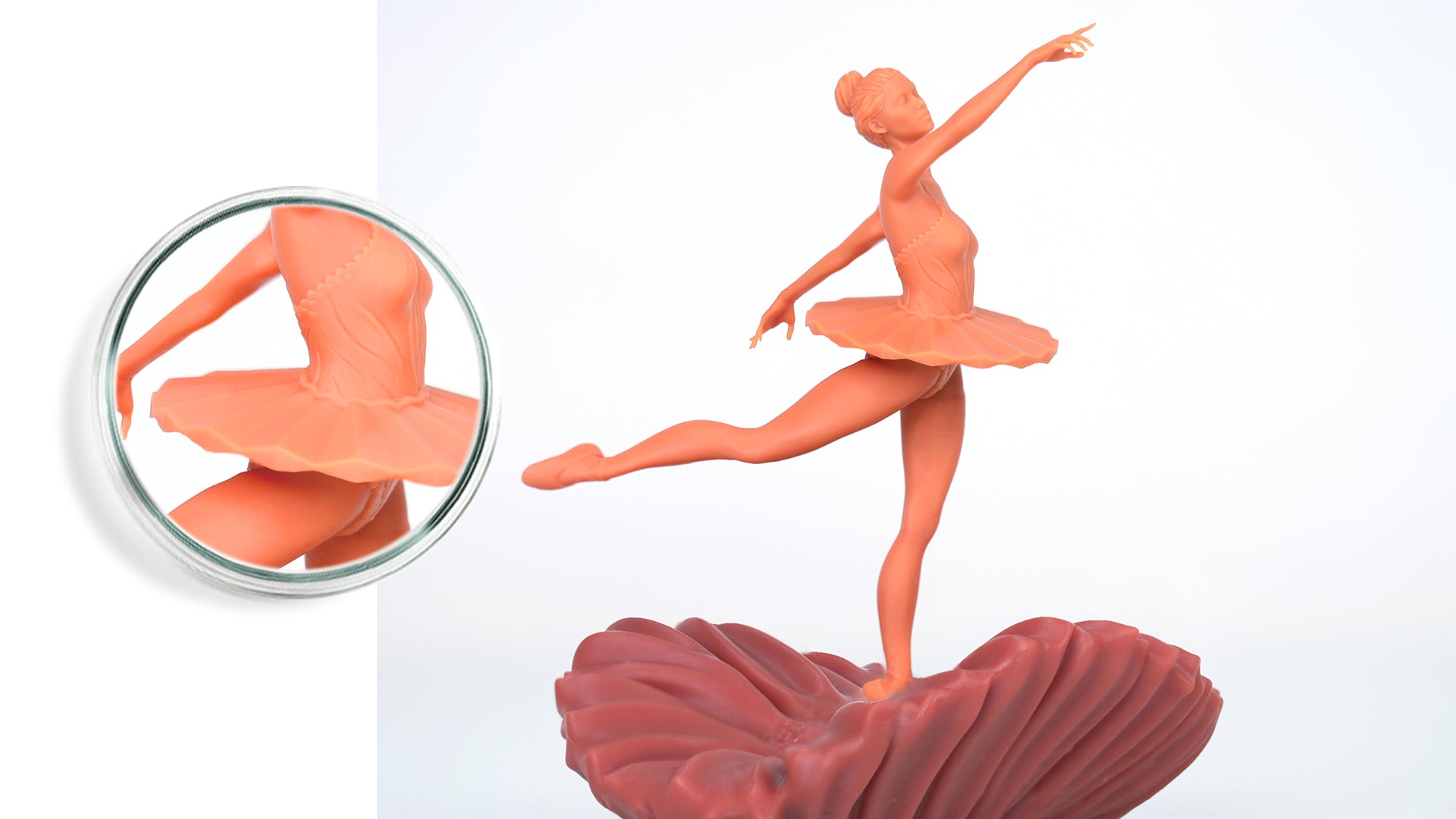 The printed final product features a smooth matte surface with intricate details vividly displayed.