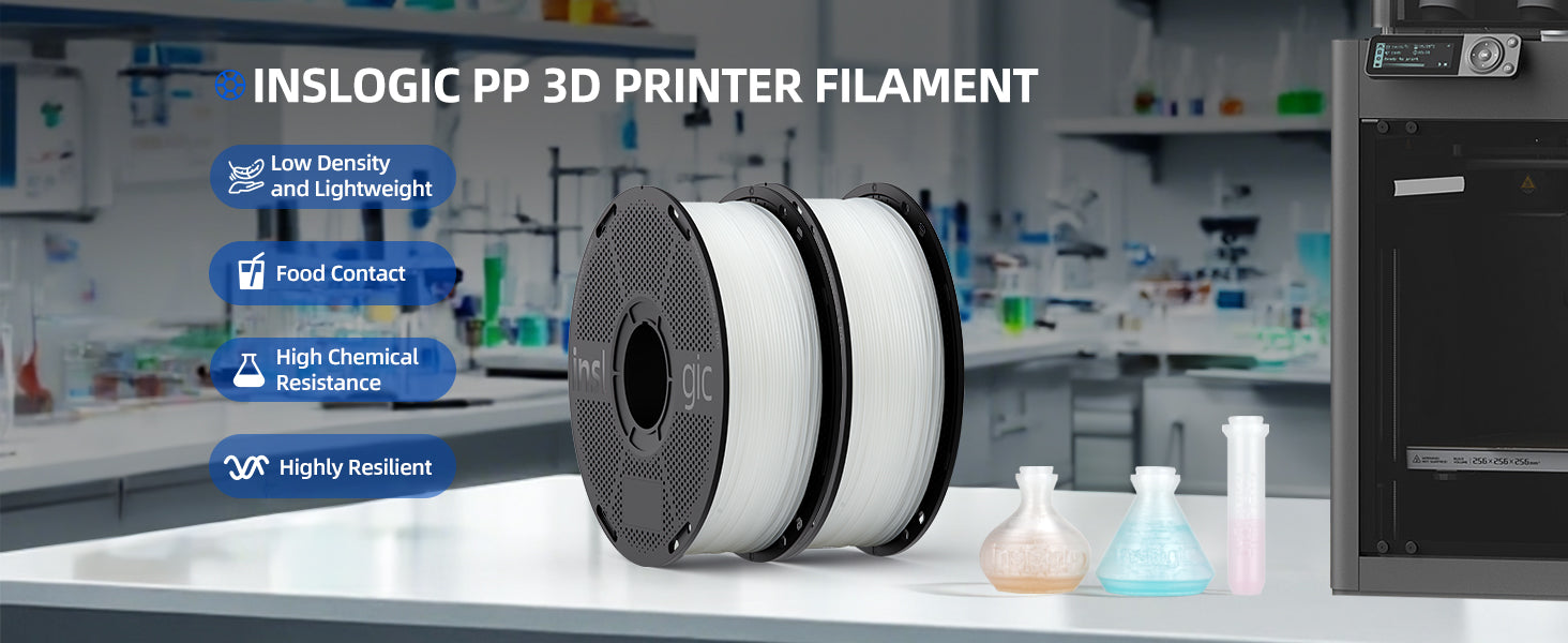 Inslogic PP (Polypropylene) Filament is a functional material, compatible with FDM 3D printers using 1.75 mm diameter filament with a precision of ±0.03 mm.